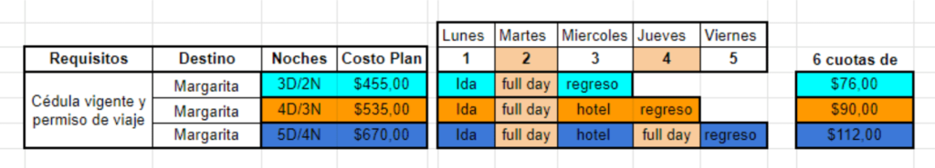 La idea es FACILITAR que todas las alumnas de la promoción puedan asistir al viaje sin importar que plan escojan, TODAS las asistentes podrán vivir la experiencia de volar juntas desde Maiquetía a Porlamar y hacer las mismas actividades los primeros 2 dias del paquete, luego cada quien retornará a Caracas según su itinerario de viaje escogido.