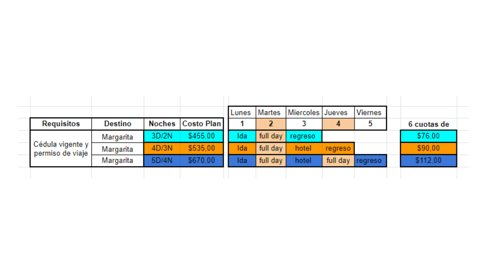 Plan B con 1 full day: desde $535 págalo en 6 cuotas a $90 cada una. Tarifas sujetas a CAMBIO y DISPONIBILIDAD sin previo aviso.